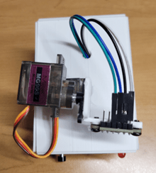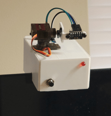 The completed Posture-Late with its visible components which include its LED indicator, push button, servo motors, and distance sensor.