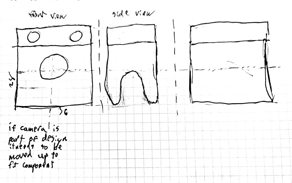 In this early design stage, I experimented with different dimensions for my prototype. Along with a camera, early iterations of my prototype included an LED light to inform users if they were too close to the device. However, at this stage, there was no method for the user to manually set a default distance.